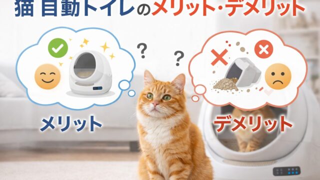 猫自動トイレのメリット・デメリットを共働き家庭目線で解説。掃除時間・臭い・サイズ・費用まで具体的に紹介し、後悔しない判断基準を解説。