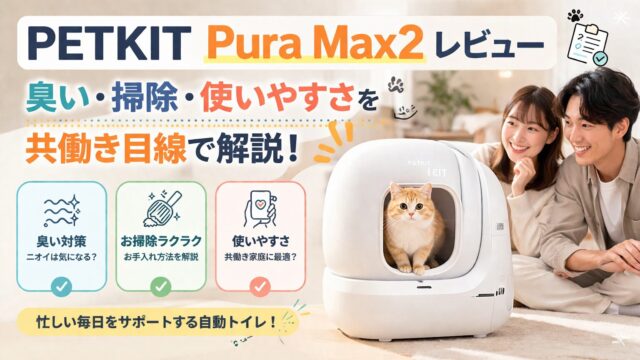 共働き家庭向けにPETKIT Pura Max2の使いやすさをレビュー。掃除負担・臭い・サイズ・注意点まで具体的に解説し、後悔しない判断基準を紹介。