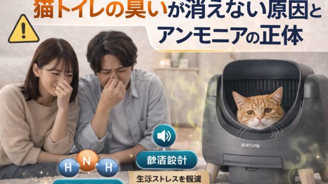 猫トイレの臭いが消えない原因はアンモニアと放置時間。臭いが強くなるタイミングと共働き家庭で悪化する理由を具体的に解説。