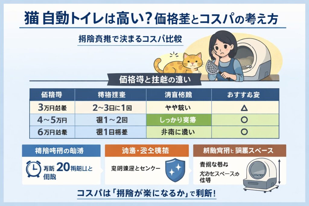 猫の自動トイレは3万円〜8万円ほどと高額です。