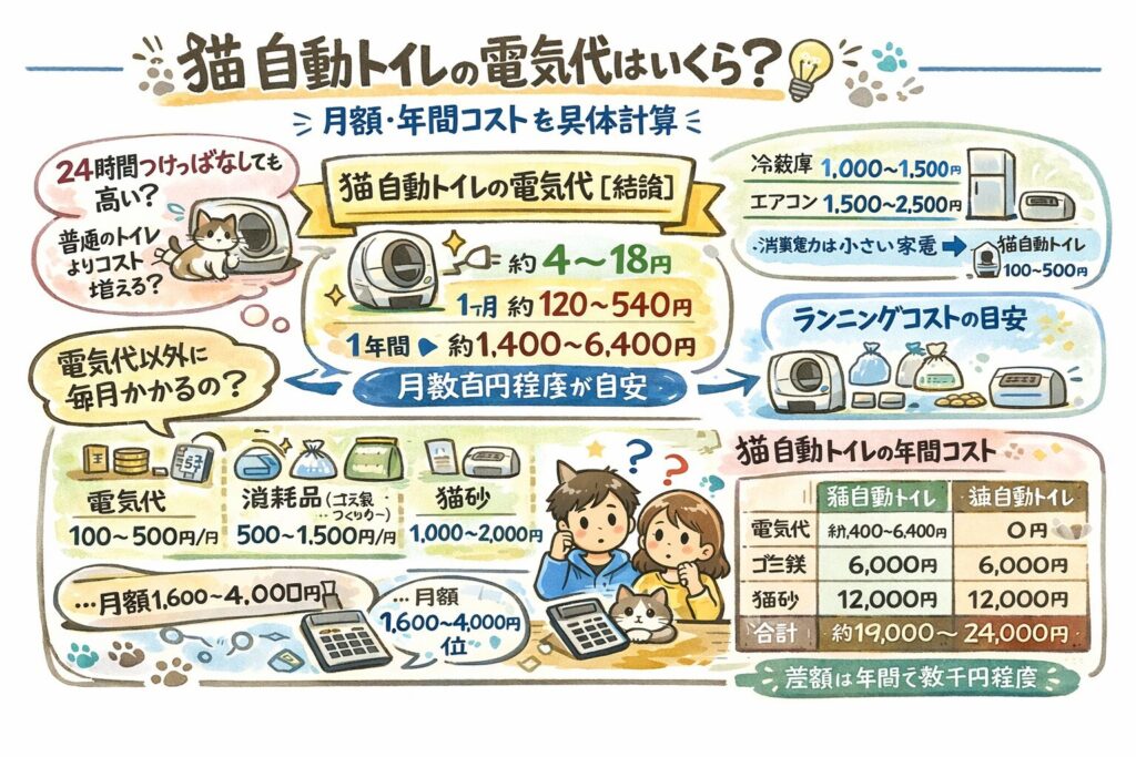 - 猫自動トイレの電気代