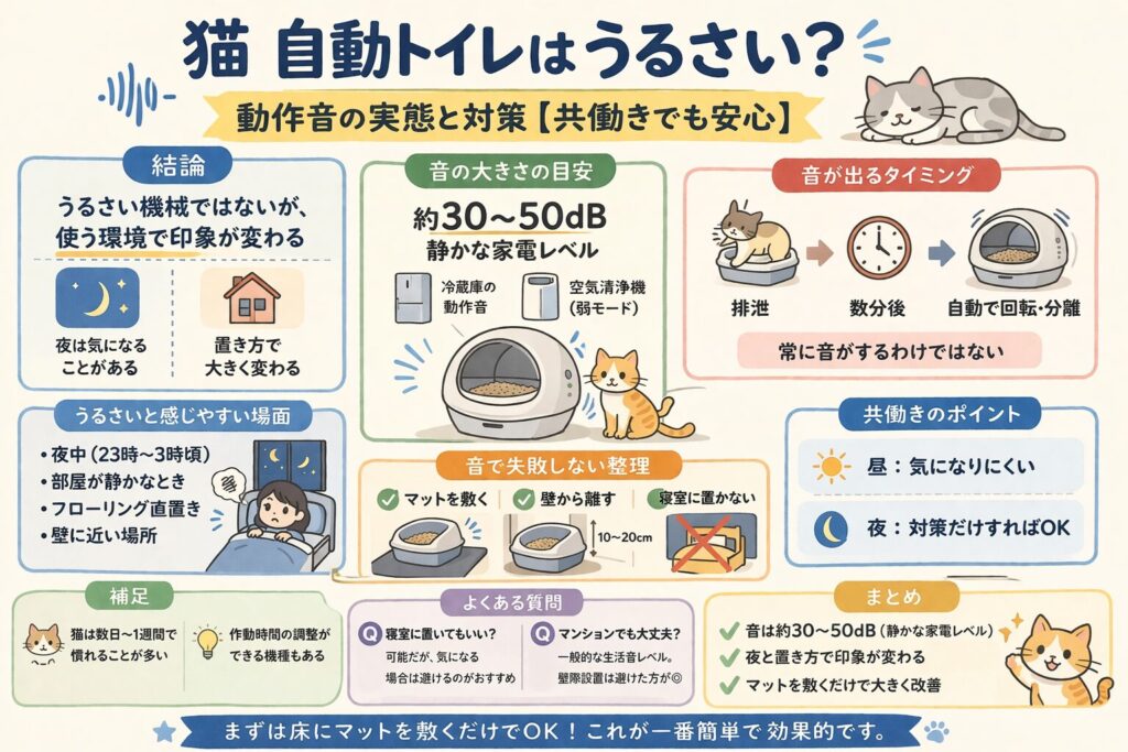 猫 自動トイレはうるさい?動作音の実態と対策【共働きでも安心】
